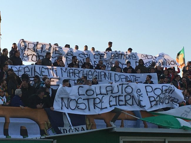 Venezia, la Curva Sud festeggia la promozione con la squadra