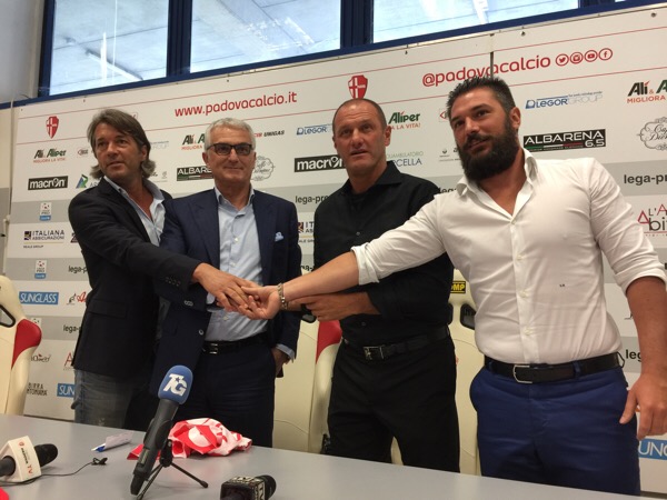 PADOVA – Carica, determinazione, voglia di spaccare il mondo. Il primo giorno di Pierpaolo Bisoli da nuovo allenatore del Padova mette subito in vetrina la sua ricetta per risalire in Serie B: “Sono molto felice di essere qui – esulta l’ex allenatore del Vicenza – per me venire a Padova era un’opportunità importante e speravo di chiudere l’accordo. Questa è una piazza importantissima, e so che voi siete esigenti ma remando tutti dalla stessa parte otterremo i risultati sperati. Abbiamo degli obiettivi, e ho un’idea: agli allenamenti non bisogna venire per timbrare il cartellino, ma per onorare il proprio lavoro e la gloriosa maglia che si indossa”. Bisoli ha poi annunciato che inizierà col 4-3-1-2: “L’idea base è questa – sottolinea – ma dovrete abituarvi al fatto che farò tanti cambiamenti. Sono abituato a variare modulo e nessuno avrà il posto assicurato. Se, per ipotesi, abbiamo un ragazzo del 98 forte e merita di giocare più di un big, state pur certi che con me giocherà il giovane. Non posso promettervi di vincere il campionato, ma posso promettervi che i giocatori usciranno stremati dal campo in ogni partita ed allenamento, questo lo posso assicurare”. A margine della conferenza stampa è intervenuto anche il presidente Roberto Bonetto: “Il curriculum di Bisoli è la riprova che abbiamo scelto un allenatore importante. La scelta di un allenatore di prim’ordine parla da sé, vogliamo fare meglio dell’anno scorso. Colgo l’occasione per fare l’in bocca al lupo a Sergio Giordani, spero che possa esservi vicino come lo è stato Bitonci, quindi grazie Massimo e benvenuto Sergio. E i tifosi stiano tranquilli, perché vogliamo riportare il Padova in alto. Se vogliamo iniziare a scrivere e a parlare di serie B in questa stanza dobbiamo essere tutti uniti… Dateci una mano”