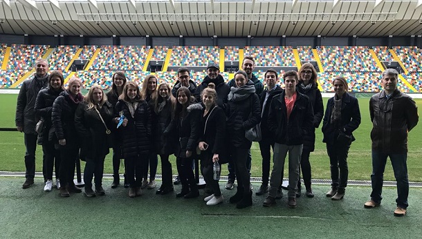 Alcuni studenti dell’University if Rhode Island (USA) lunedì scorso – 8 gennaio 2018 – hanno visitato la Dacia Arena. I ragazzi sono ospiti dell’Università degli Studi di Udine per seguire il corso di “Global Supply Chain Management” tenuto dai professori Sartor e Nassimbeni della Facoltà di Ingegneria. Dopo un breve tour della Dacia Arena i ragazzi hanno potuto assistere a una breve presentazione dell’attività di scouting dell’Udinese Calcio.