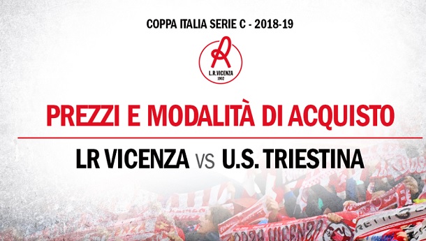 E’ attiva la prevendita per la gara di Coppa Italia Serie C tra L.R. Vicenza e l’U.S. Triestina, in programma mercoledì 24 ottobre alle ore 19:30, presso lo Stadio “Romeo Menti”. Gli abbonamenti per il campionato non consentiranno l’ingresso allo stadio.