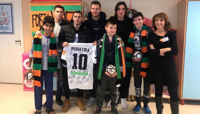 Questa mattina il Venezia FC si è recato all’Ospedale dell’Angelo di Mestre per far visita ai bambini ricoverati nella struttura. A rappresentare il club erano presenti l’Amministratore Delegato Andrea Rogg, il Responsabile dei Progetti Internazionali Paolo Poggi, il Team Manager Alessandro Servi e i giocatori Marco Modolo, Simone Bentivoglio, Harvey St Clair e Nicola Citro. I Leoni, accolti dal Primario dottor Giovanni Battista Pozzan e dalla insegnante della “Scuola in Pediatria” Maria Pia Vivolo, hanno consegnato alcuni regali ai bambini ricoverati, a coronamento di una mattinata davvero speciale.
