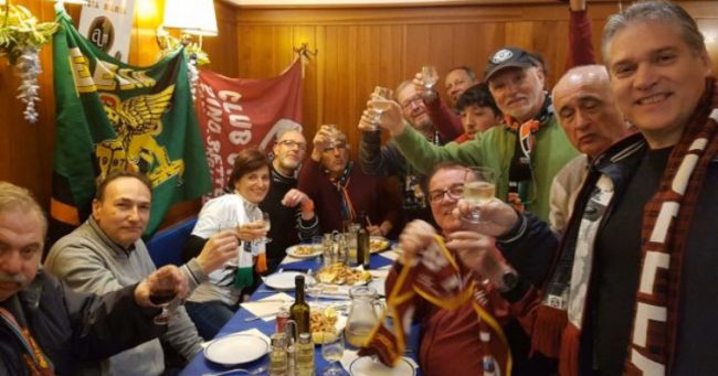Il Centro Coordinamento Club Granata-CCCG, per rinverdire questi ricordi di veri valori sportivi, con Pierluigi Basso e Lamberto Tellatin ha contattato gli amici dottor Bruno Agazia e Franco Vianello Moro del noto gruppo Arancioneroverdi United per riitrovarsi in un augurio natalizio nel segno della condivisione e del consueto motto “avversari in campo e amici fuori”.