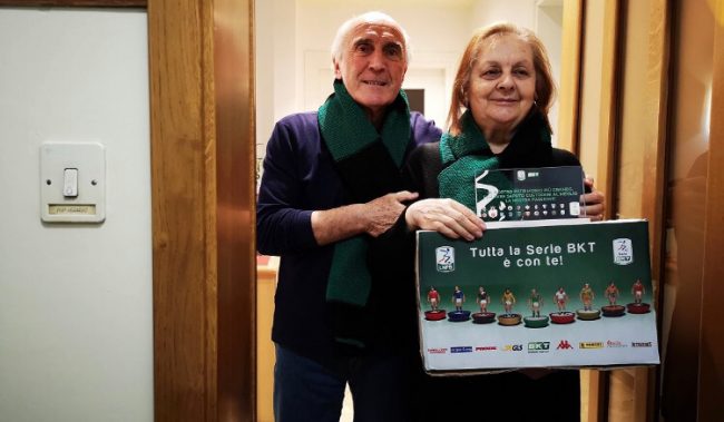 Le speciali confezioni regalo (che sono in consegna ai tifosi over 70 da più tempo abbonati alle rispettive squadre della Serie BKT), contengono le box di legno coi germogli offerti da BKT, gli infusi e le marmellate bio di Prozis, i fazzoletti e le shopping bag di Acqua Eva, un abbonamento a Corriere dello sport e Tuttosport, l’almanacco Panini sulla storia del calcio e, infine, le mascherine omaggio della Lega B e le penne tascabili con gel igienizzante offerte da BKT, per sottolineare l’attenzione alla sicurezza e alla salute di tutti i tifosi. Il tutto accompagnato da una targa che racchiude in poche righe tutto il significato dell’iniziativa: ‘Al nostro patrimonio più grande, per aver saputo custodire al meglio la nostra passione’. La logistica e distribuzione dei pacchi è avvenuta grazie al contributo di GLS, anch’esso partner ufficiale del campionato.