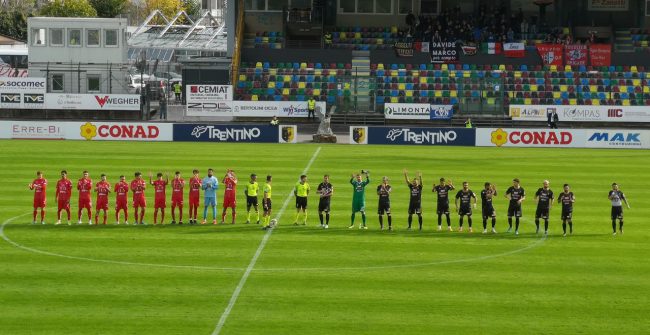 TRENTO (3-4-2-1): Marchegiani; Ferri, Trainotti, Garcia Tena (1’ st GalazziniI; Ballarini, Cittadino (35’ st Rufo Luci), Damian, Fabbri; Saporetti (9’ st Bocalon), Belcastro (35’ st Ianesi), Brighenti (43’ st Mihai). A disposizione: Tommasi, Matteucci, Dalla Francesca, Scirè. All.: Tedino.
