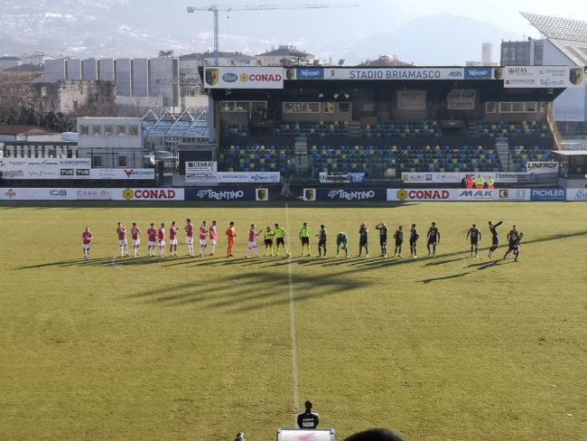 TRENTO (4-3-2-1): Marchegiani; Galazzini, Vitturini, Ferri, Semprini (48’st Simonti); Ballarini, Damian (1’st Mihai), Fabbri; Pasquato, Saporetti; Brighenti (32’pt Ianesi, 23’st Trainotti). All. Tedino