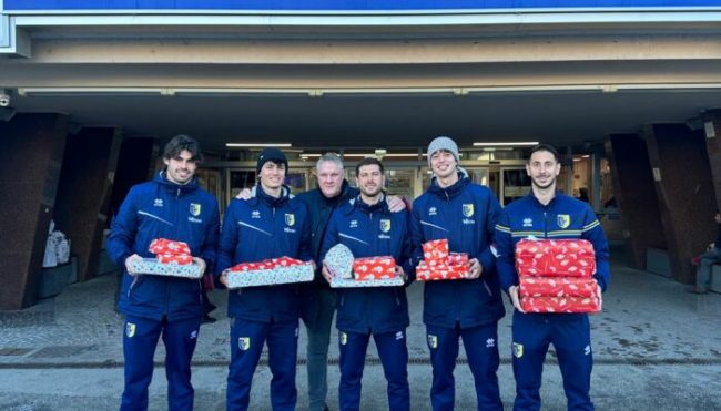 Nella giornata di ieri, il Presidente dell’A.C. Trento 1921 Mauro Giacca, assieme ad una delegazione di calciatori della Prima Squadra, ha fatto visita ai Reparti di Pediatria e Chirurgia Pediatrica dell’Ospedale Santa Chiara di Trento. Accompagnati dal Professor Soffiati, direttore dell’Unità Operativa Pediatria, e dagli operatori sanitari dei due reparti, i gialloblù hanno trascorso del tempo assieme ai piccoli pazienti ricoverati e hanno consegnato loro dei piccoli in vista del Natale.