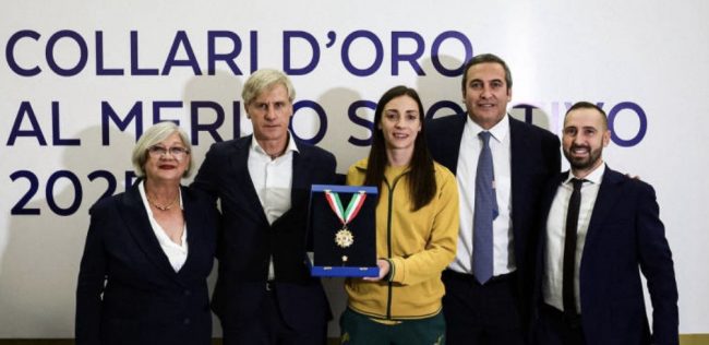 Il Collare d’Oro, istituito per riconoscere i più alti successi sportivi degli atleti azzurri e i meriti delle società centenarie, è stato consegnato al Presidente Esecutivo dell’Hellas Verona Italo Zanzi dal Ministro per lo Sport e i Giovani Andrea Abodi e dal Presidente del CONI Luciano Buonfiglio.