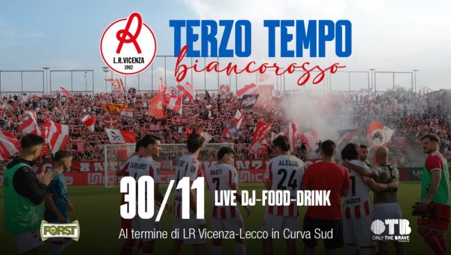 La società L.R. Vicenza è lieta di annunciare che al termine della partita L.R. Vicenza-Lecco, incontro valido per la sedicesima giornata di Serie C Sky Wifi 2025/2026, si terrà presso il settore Curva Sud il terzo tempo biancorosso, evento organizzato dal club che sarà aperto a tutti con musica dal vivo, food and beverage e tanto altro ancora. Per questo importante evento parte di ricavato dell’iniziativa sarà devoluto a OTB Foundation.