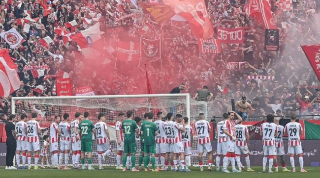 provocando la bruciatura del manto erboso, durante la gara, otto fumogeni nel recinto di gioco e, al 46° minuto della gara, un fumogeno sul terreno di gioco, senza conseguenze;